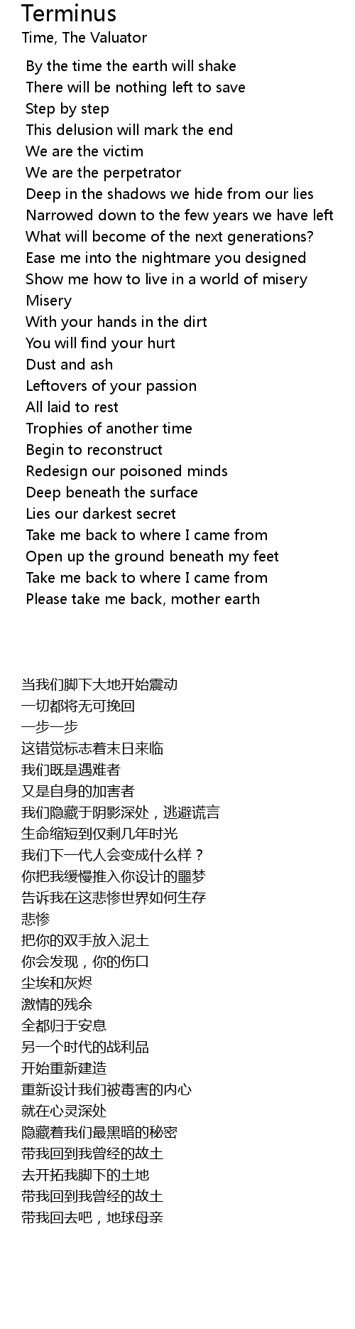 Please take me back, mother earth |