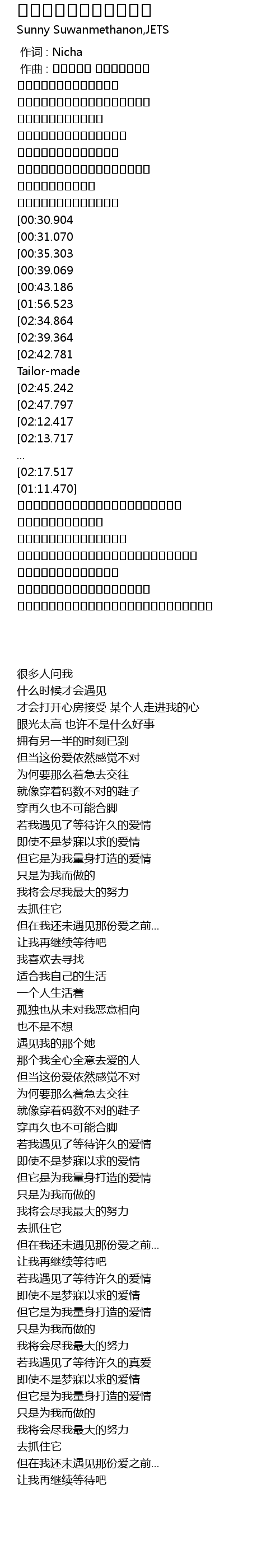 | [02:58.750][02:42.781][02:04.814][00:54.703] | แต่เป็นรักที่ Tailor-made |