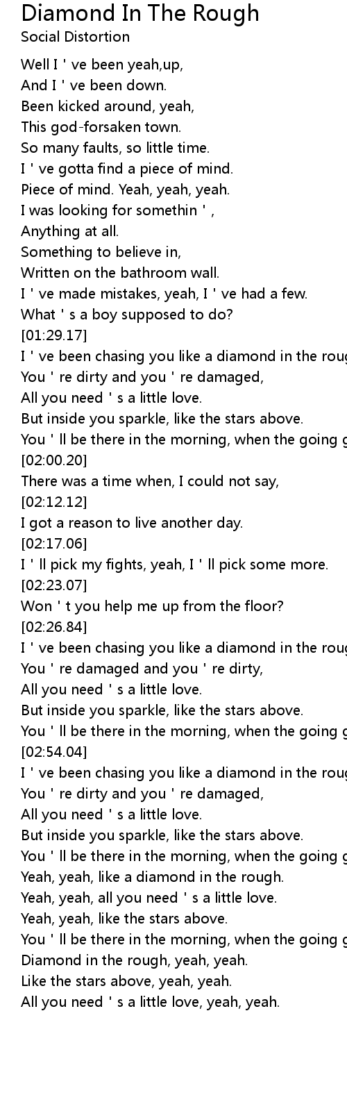 | [04:07.49] | Diamond in the rough, yeah, yeah. |