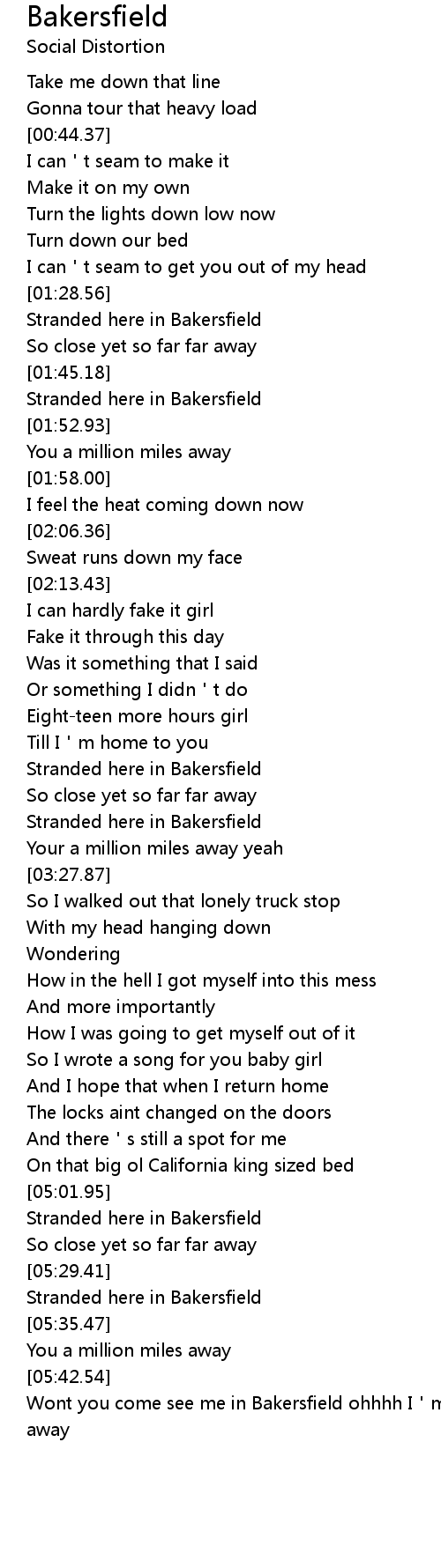 | [01:33.06] | Stranded here in Bakersfield |