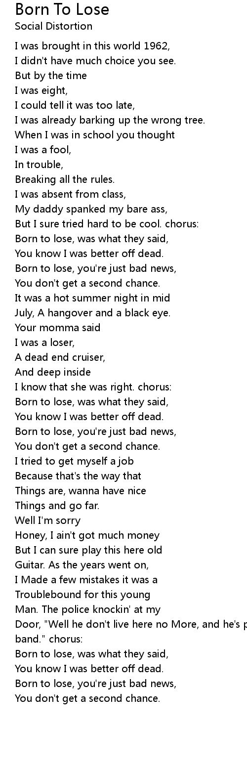 Born to lose, was what they said, |