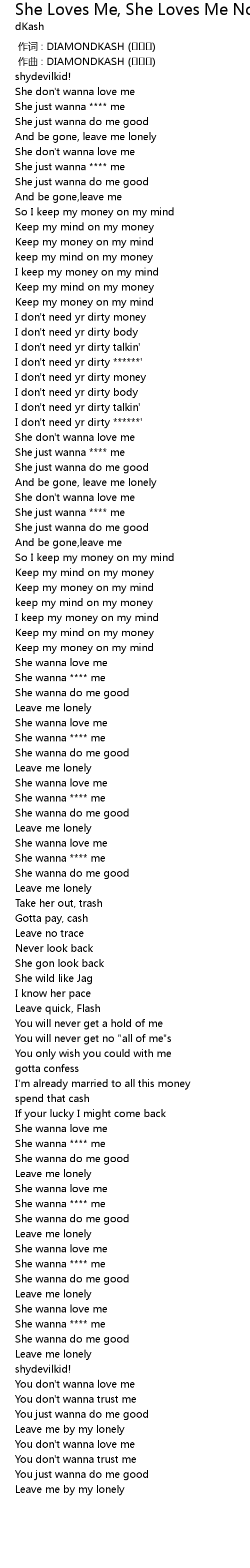 | [01:06.80] | She don' t wanna love me |