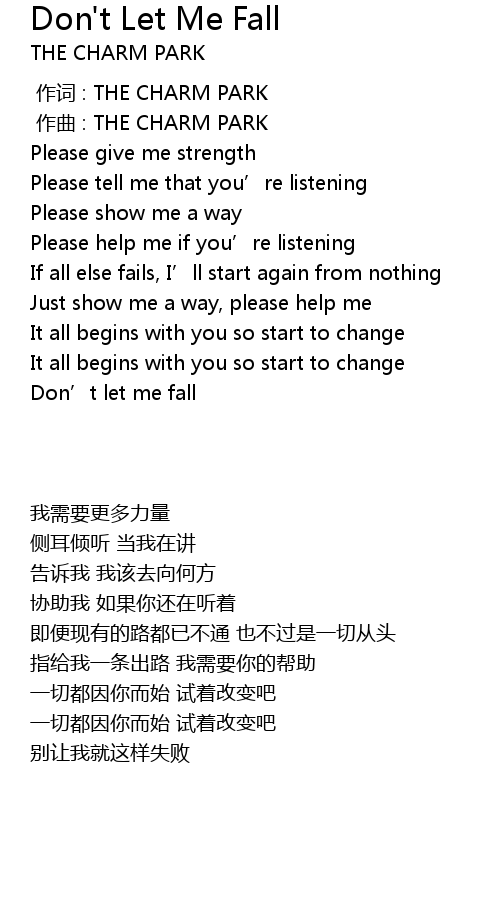 | [02:59.243] | Don' t let me fall |