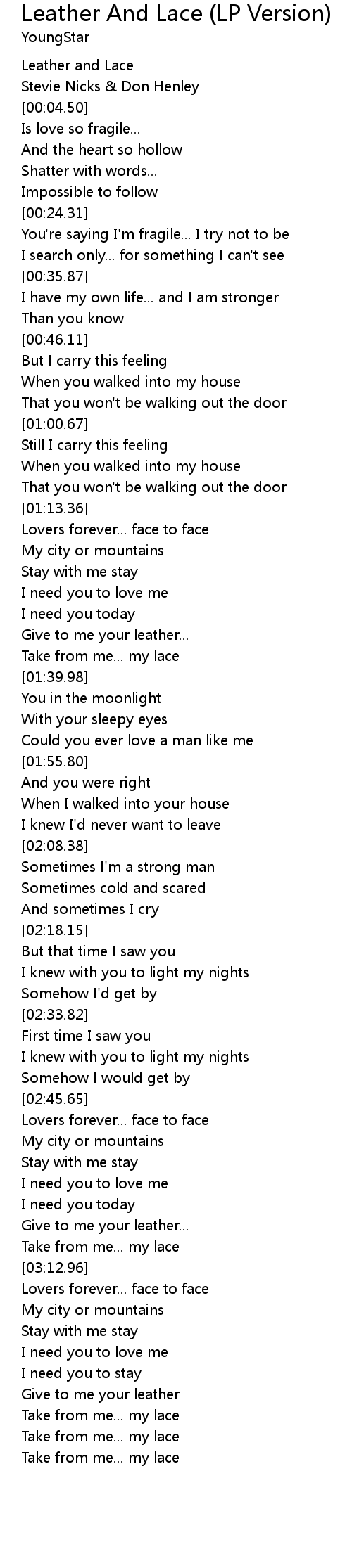 Take from me... my lace |