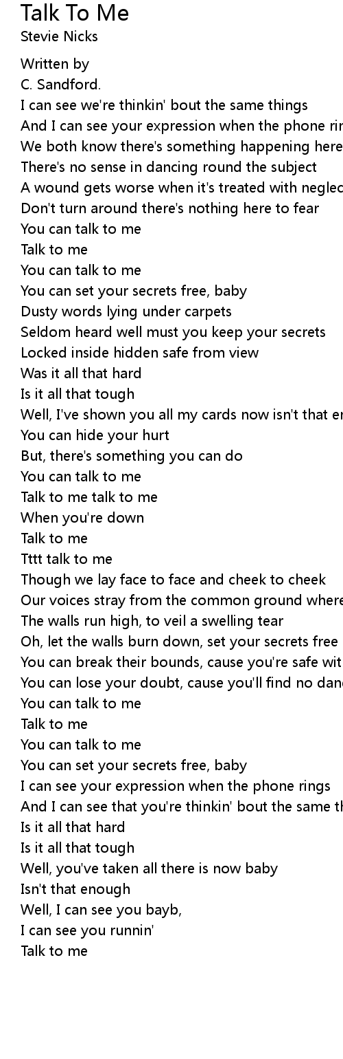 Talk to me talk to me |