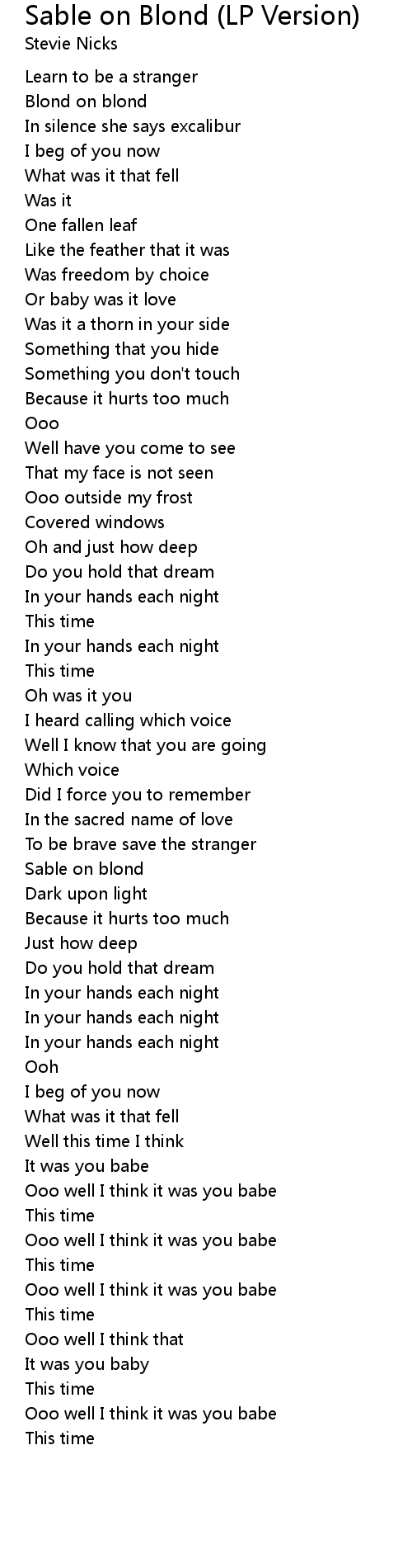 Learn to be a stranger |