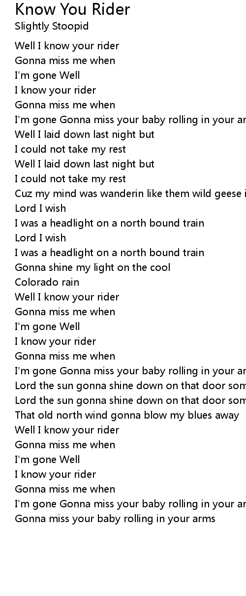 Well I know your rider |