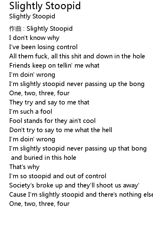 | Cause I' m slightly stoopid and there' s nothing else to say | |