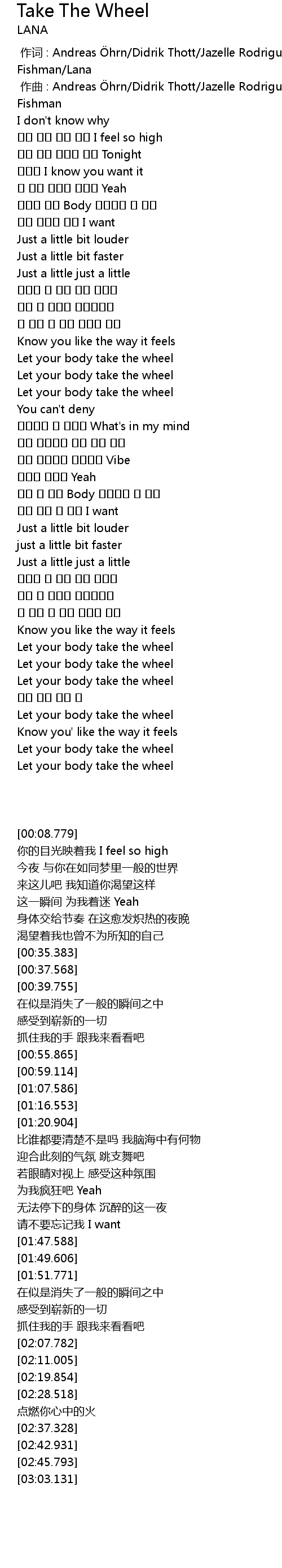 | [00:00.000] | zuò cí : Andreas hrn Didrik Thott Jazelle Rodriguez Sam DJ Sam F Fishman Lana |