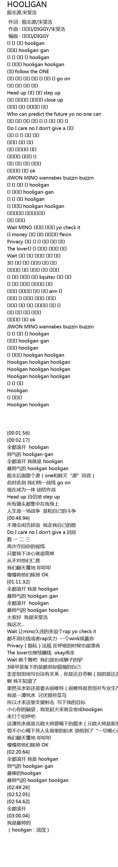 | [01:31.62] | 最帅气的 hooligan hooligan |