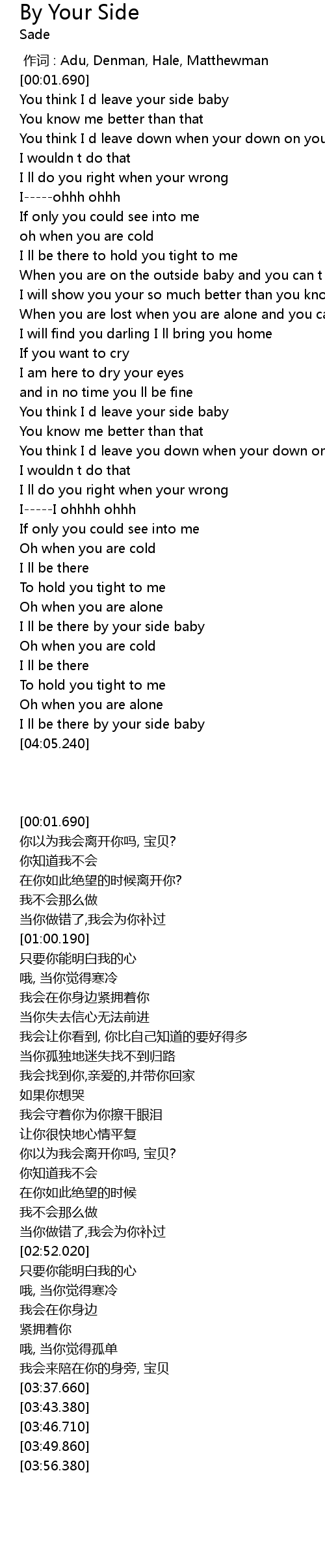 | [03:56.380] | I ll be there by your side baby |