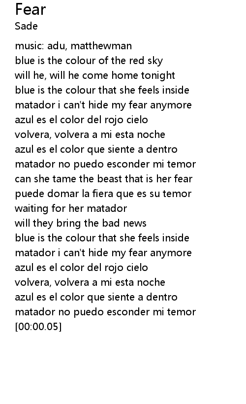 | [00:49.19] | matador i can't hide my fear anymore |