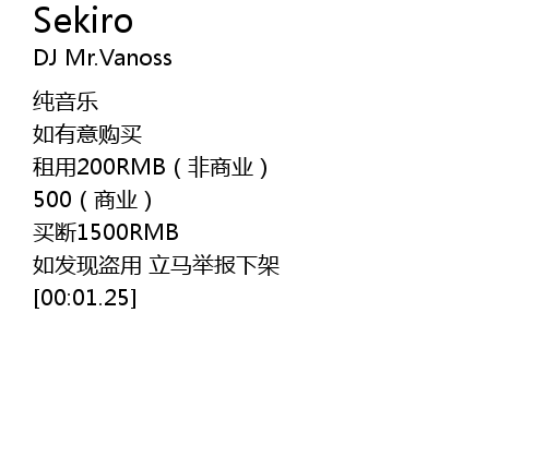 | [00:01.13] | 租用200RMB(非商业) |