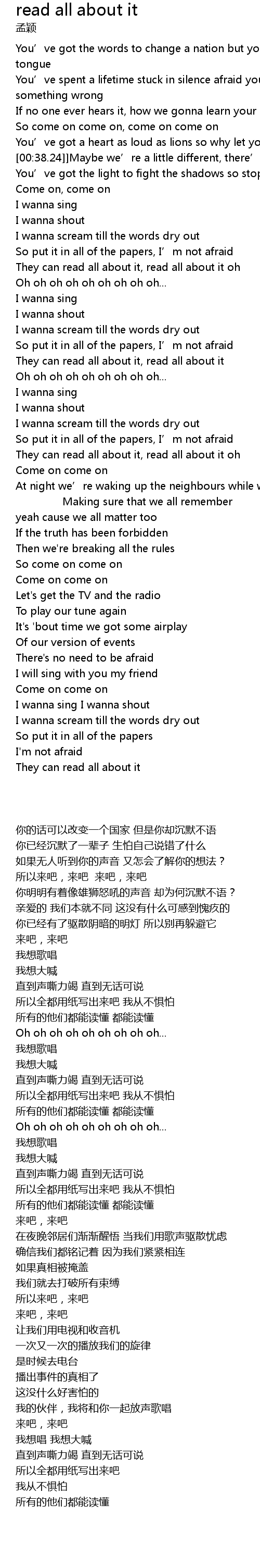 | 歌曲 | read all about it |