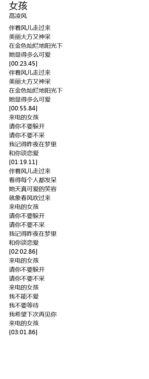 | [00:57.12] | 来电的女孩 |