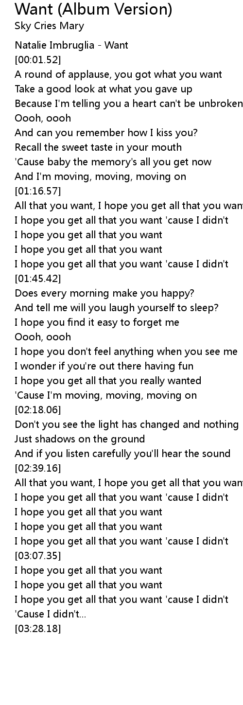 [02:45.42] I hope you get all that you want 'cause I didn't