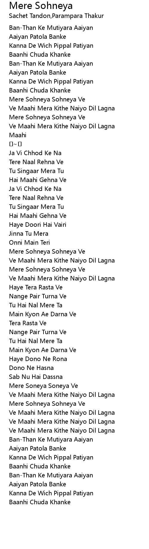 | [01:36.485] | Mere Sohneya Sohneya Ve |