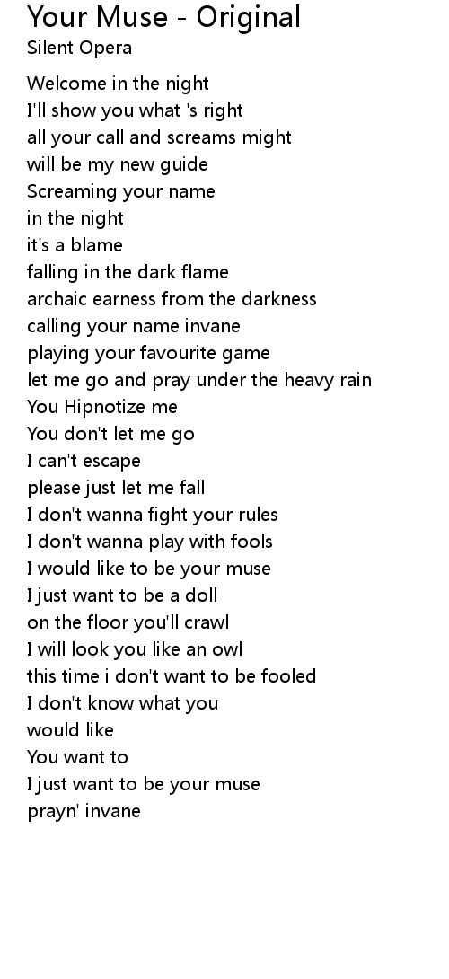 I would like to be your muse |