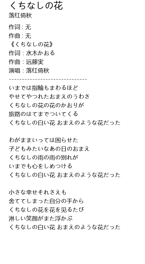| 歌曲 | くちなしの花 |