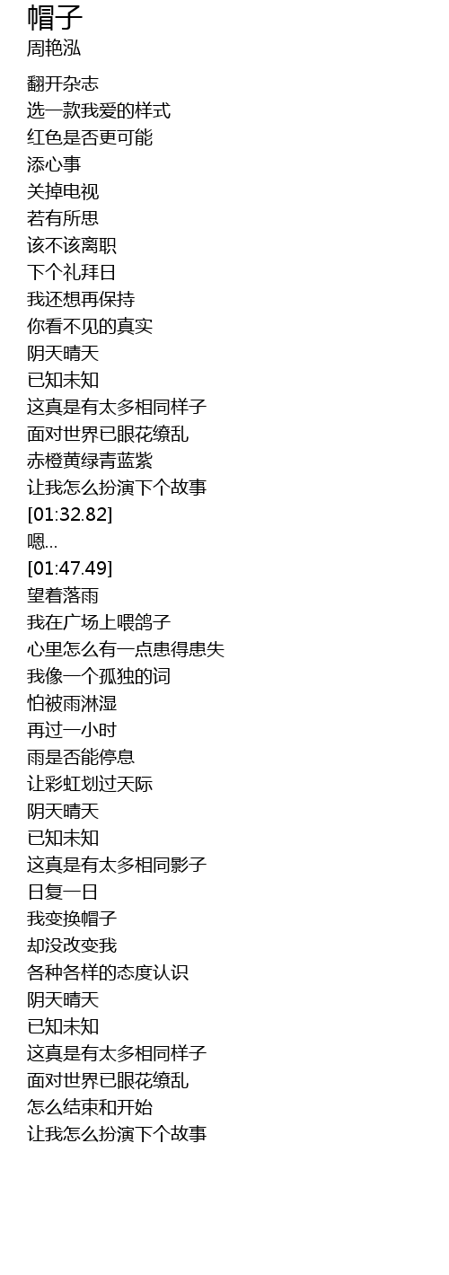 | [02:38.28] | 我变换帽子 |