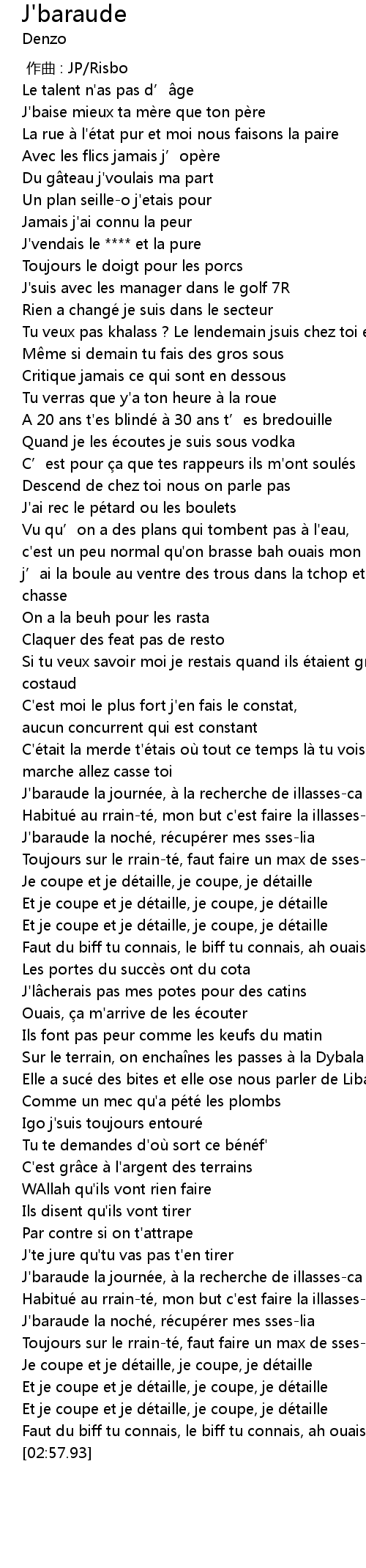 | [02:35.03] | J'baraude la noché, récupérer mes sses-lia |