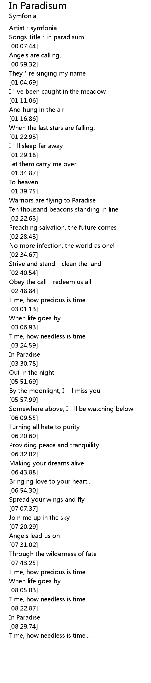 | [03:25.78] | In Paradise |