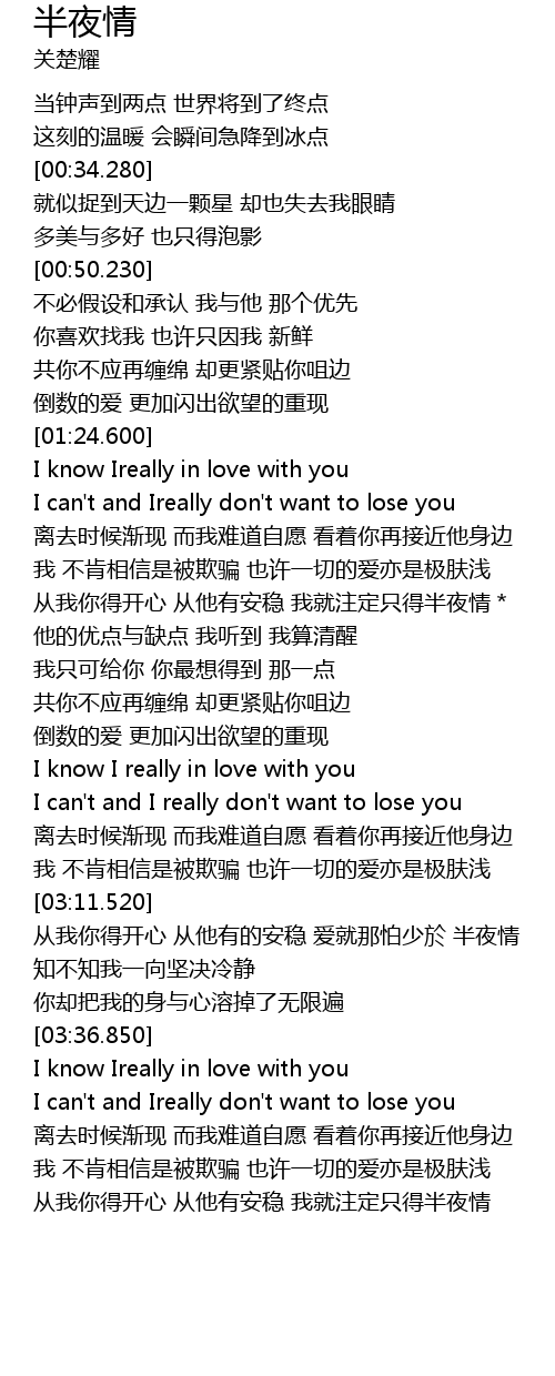 | [03:12.270] | 从我你得开心 从他有的安稳 爱就那怕少於 半夜情 |