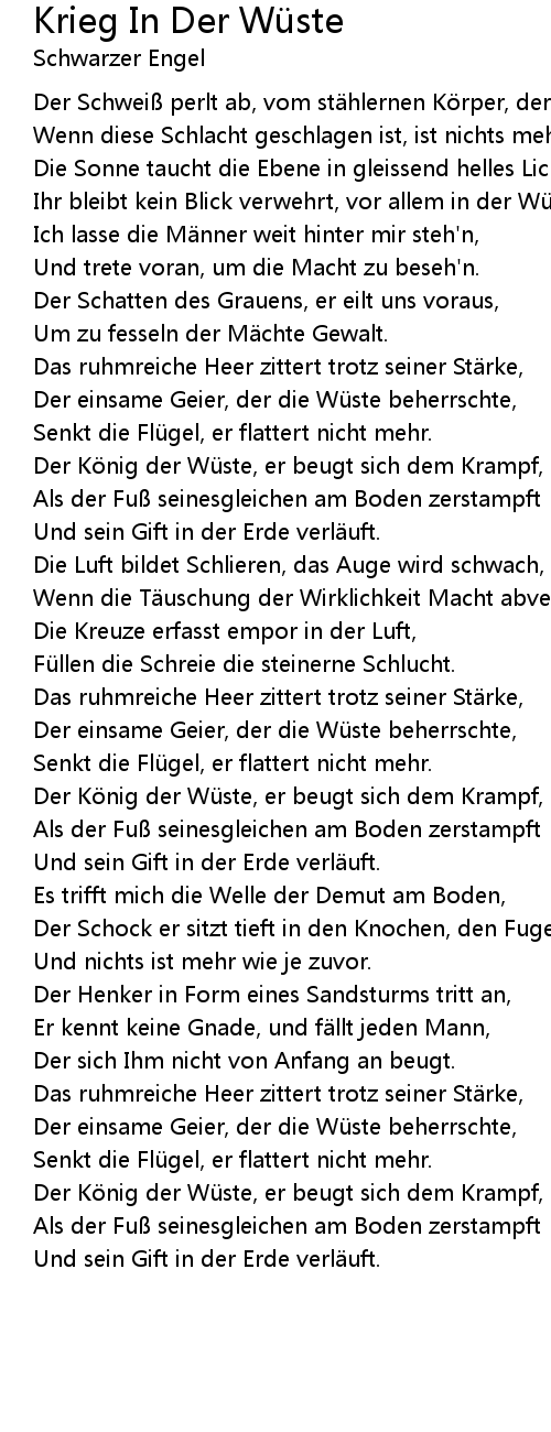 | Der K nig der Wü ste, er beugt sich dem Krampf, | |