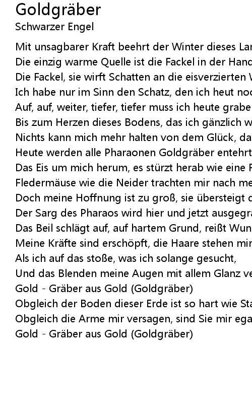 | Obgleich die Arme mir versagen, sind Sie mir egal, denn ich spüre...Gold | |