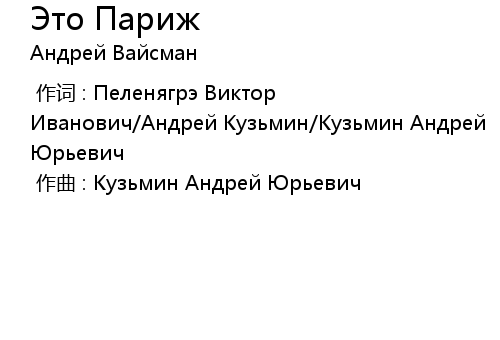 | [00:00.00-1] | 作词 : Пеленягрэ Виктор Иванович/Андрей Кузьмин/Кузьмин Андрей Юрьевич |