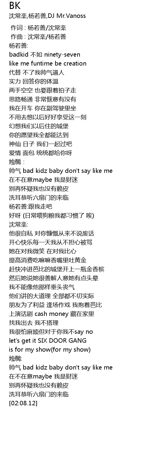 | [00:47.930] | shuai qi bad kidz baby don' t say like me |