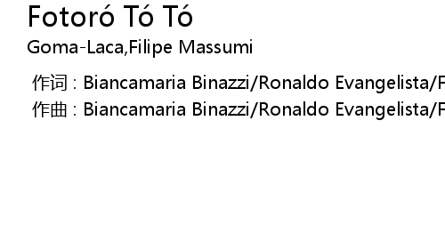 | [00:00.00-1] | 作曲 : Biancamaria Binazzi/Ronaldo Evangelista/Filipe Massumi |