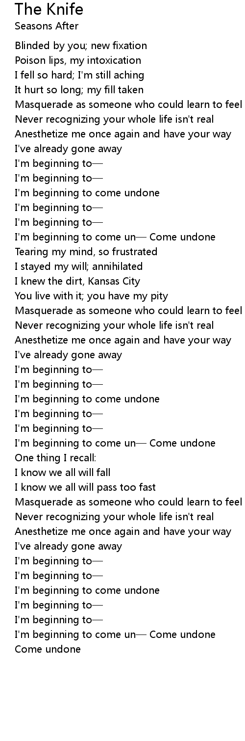 | I' m beginning to come un Come undone | |