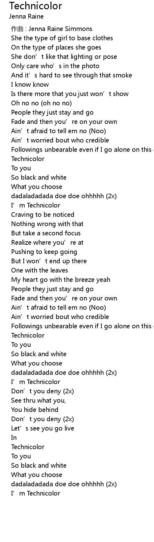 | [02:47.05] | I’m Technicolor |