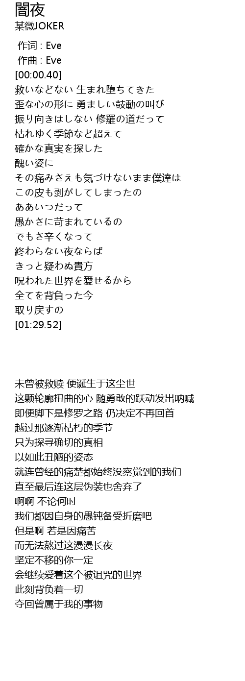 | [00:25.80] | 救いなどない 生まれ堕ちてきた |