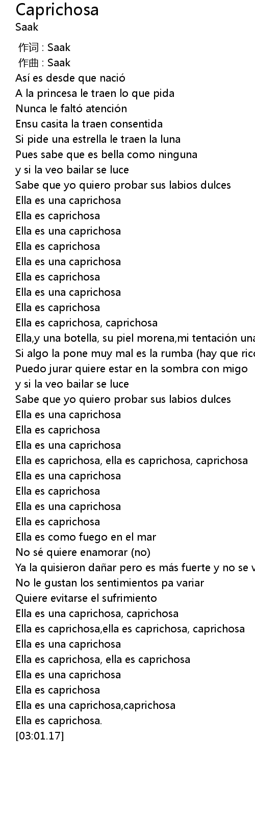 | [02:53.70] | Ella es una caprichosa,caprichosa |
