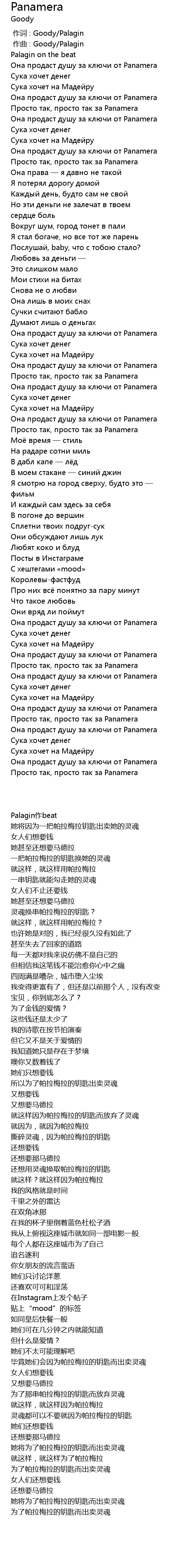 | [00:20.81] | Она продаст душу за ключи от Panamera |
