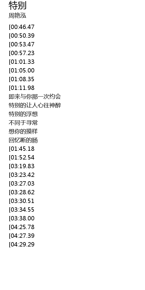 | [04:12.76][03:28.62][02:07.69] | 特别的优美 |