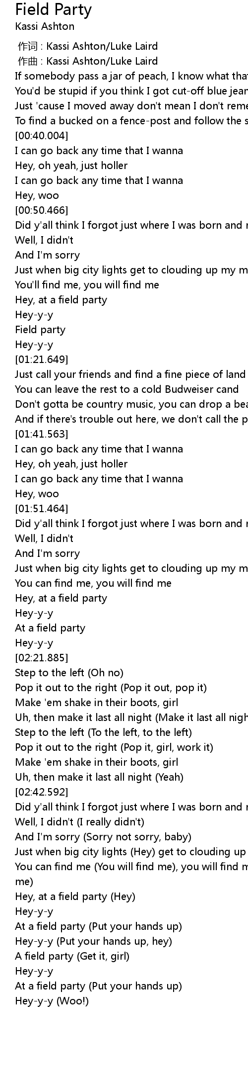 | [02:43.179] | Did y'all think I forgot just where I was born and raised? |