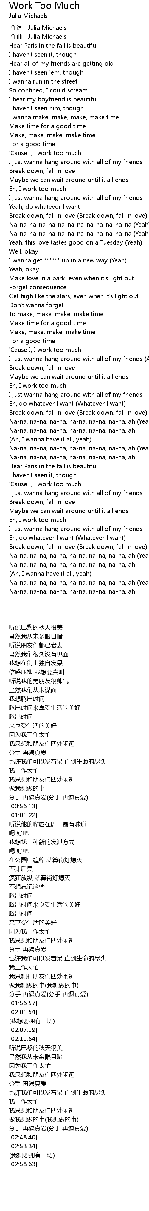 | 歌曲 | Work Too Much |