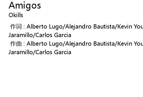 | [00:00.00-1] | zuò qǔ : Alberto Lugo Alejandro Bautista Kevin Yousef Leonardo Jaramillo Carlos Garcia |