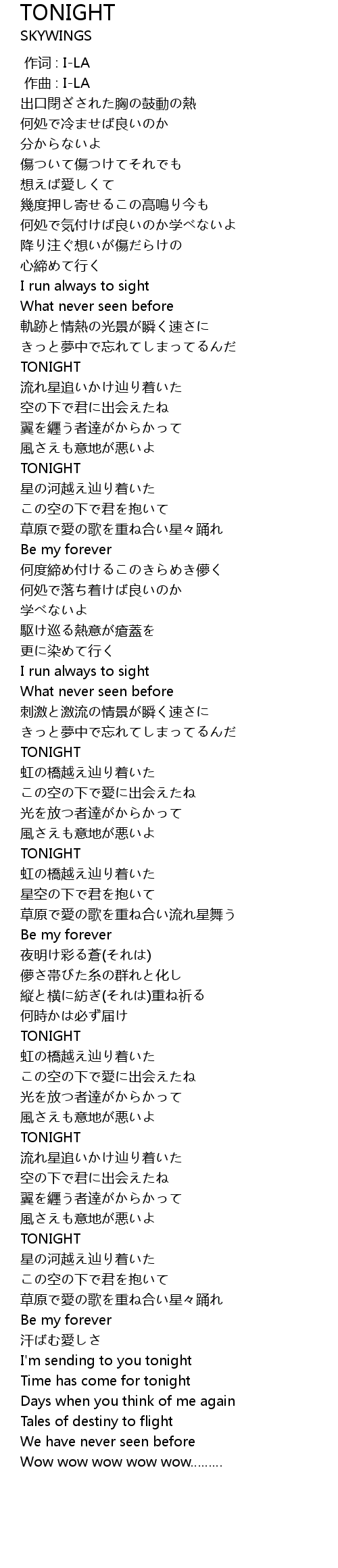 | 歌曲 | TONIGHT |