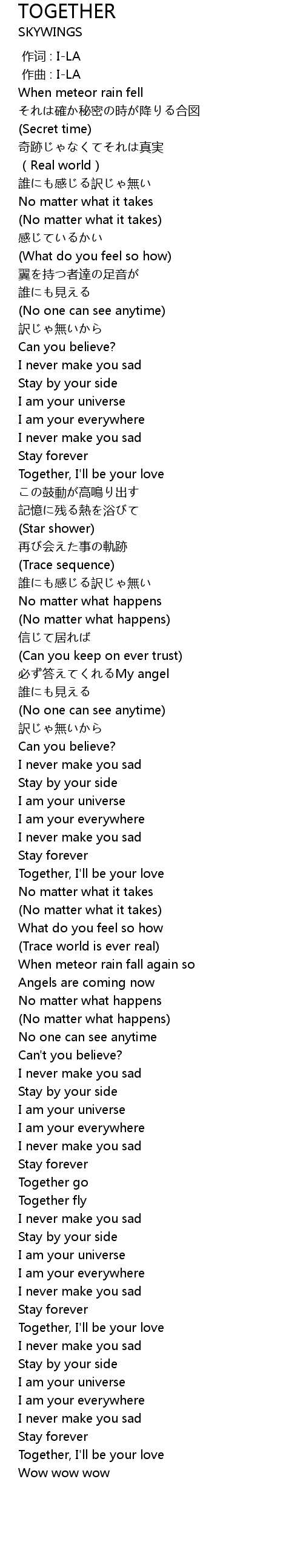 | [03:03:20] | Stay by your side |