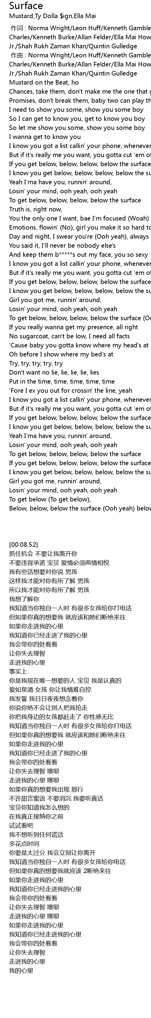 | [01:50.48] | To get below, below, below, below the surface (Ooh yeah) |