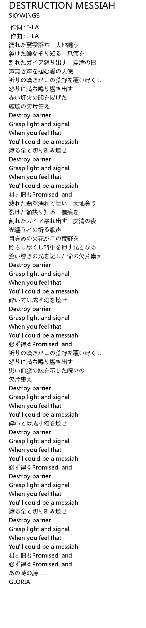 | 歌曲 | DESTRUCTION MESSIAH |