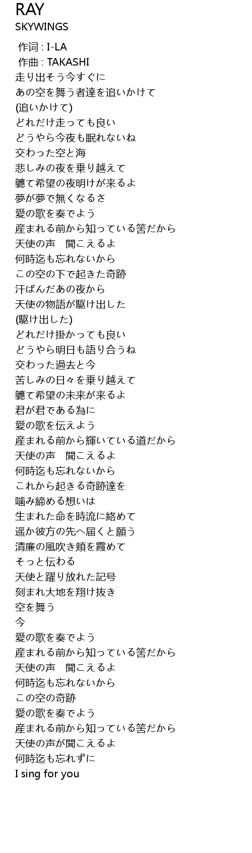 | 歌曲 | RAY |