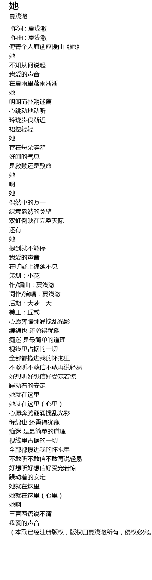 | [01:07.02] | 词作/演唱:夏浅澈 |