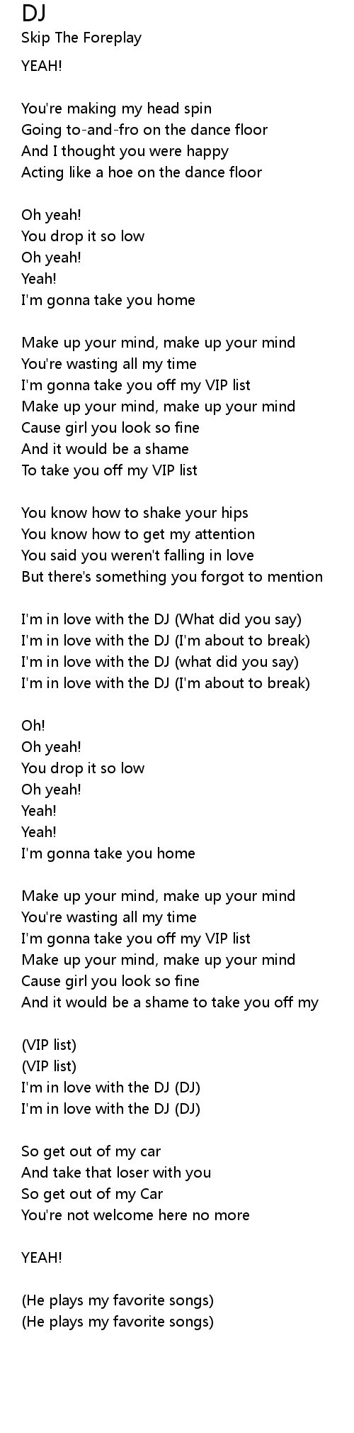 I'm in love with the DJ (what did you say) |