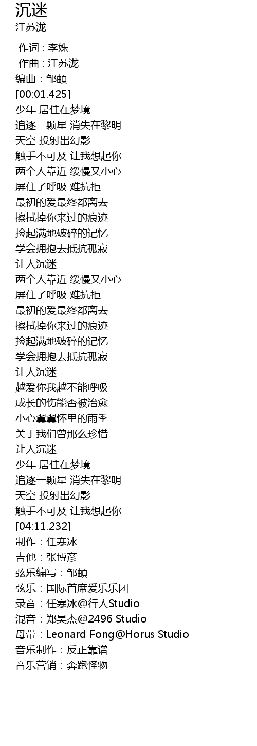 | [04:12.875] | 混音:郑昊杰@2496 Studio |