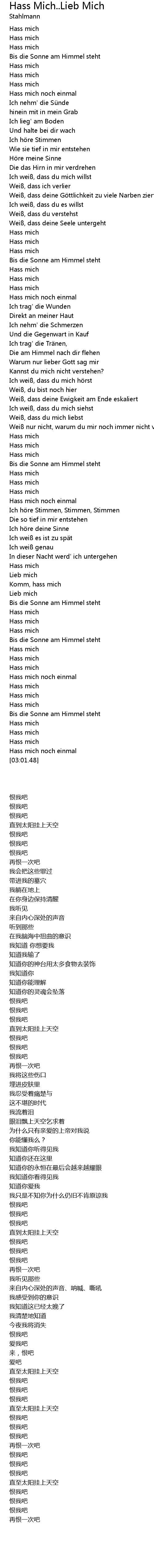 | [01:54.72] | Ich höre Stimmen, Stimmen, Stimmen |